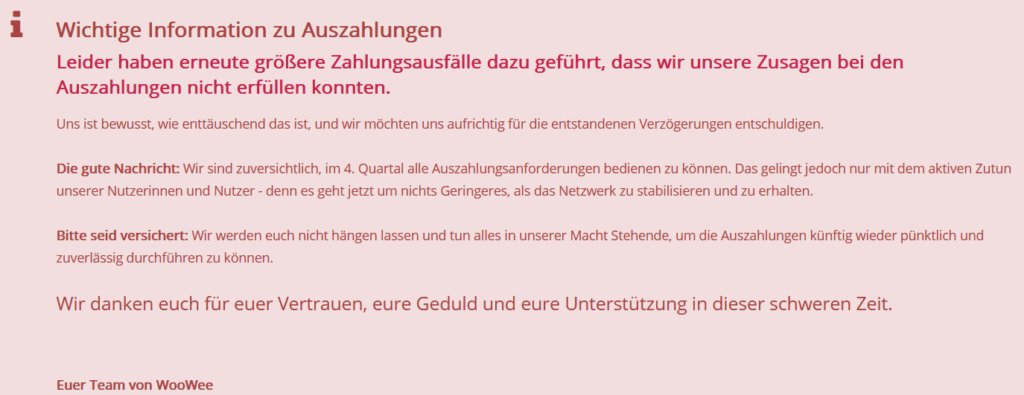 WooWee Auszahlung noch nicht erhalten?